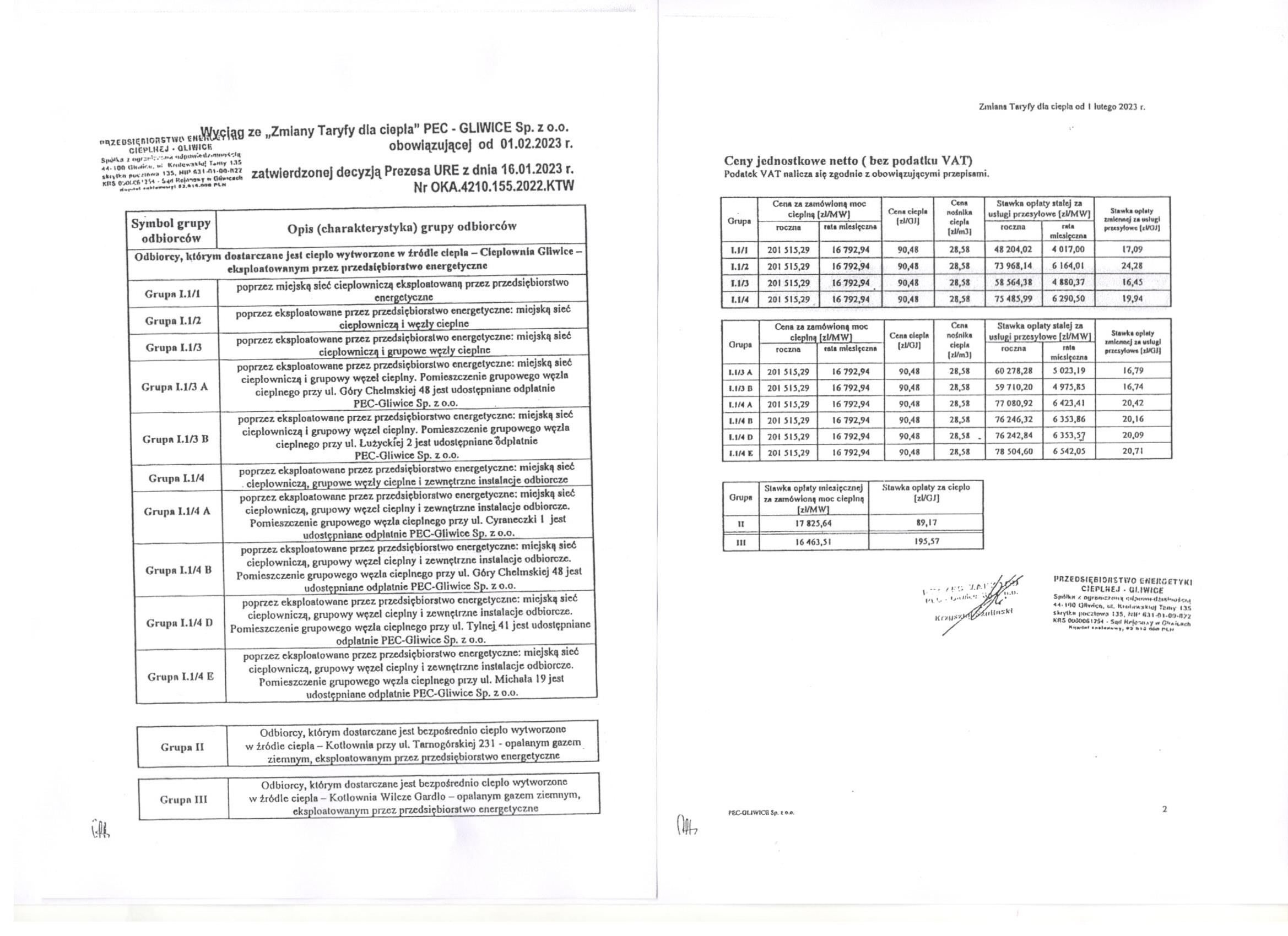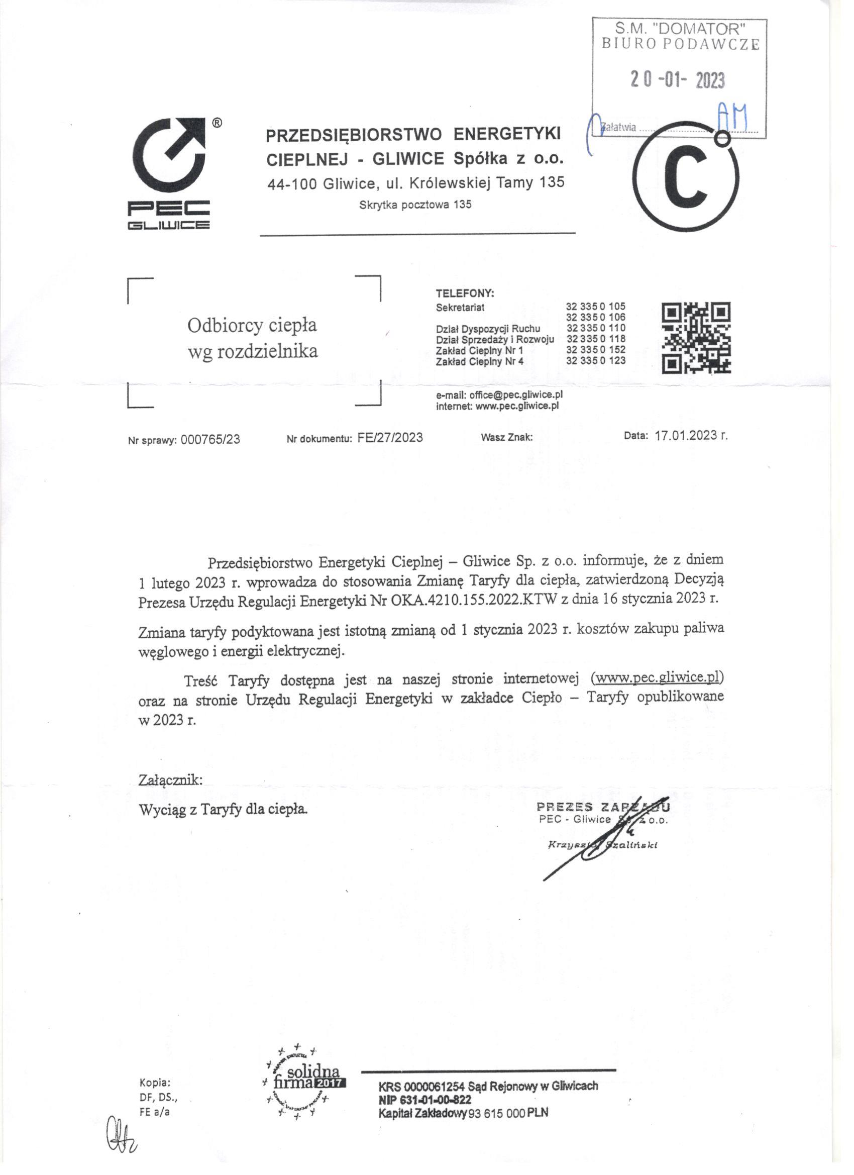 W załączonych plikach znajdą Państwo aktualne ogłoszenie związane ze zmianami taryfy dla ciepła.